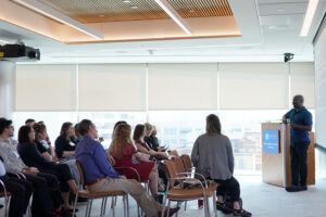 Smart Growth America’s President and CEO Calvin Gladney kicked off the convening, outlining the importance of smart growth and Complete Streets. He explained that Complete Streets moves the U.S. towards greater inclusivity when it comes to how we develop our communities. He said that “completing the streets indicates how much a community is valued,” describing the importance of building infrastructure with all road users in mind.