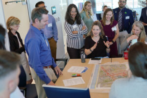 Finally, Heidi Simon, Director of Thriving Communities at SGA, and Raveena John, a Senior Program Associate with the Thriving Communities team passed out maps of intersections. Groups were tasked with proposing quick-build and demonstration projects to address problems they saw on the roads. To complicate matters further, groups had to brainstorm a community engagement plan, all within 10 minutes. What resulted was a diverse array of interventions including temporary bike lanes, bus stops, curb extensions, cross walks, and more. Groups recommended that students, the elderly, and other community members be engaged, oftentimes in nontraditional ways such as direct surveys at bus stops.
