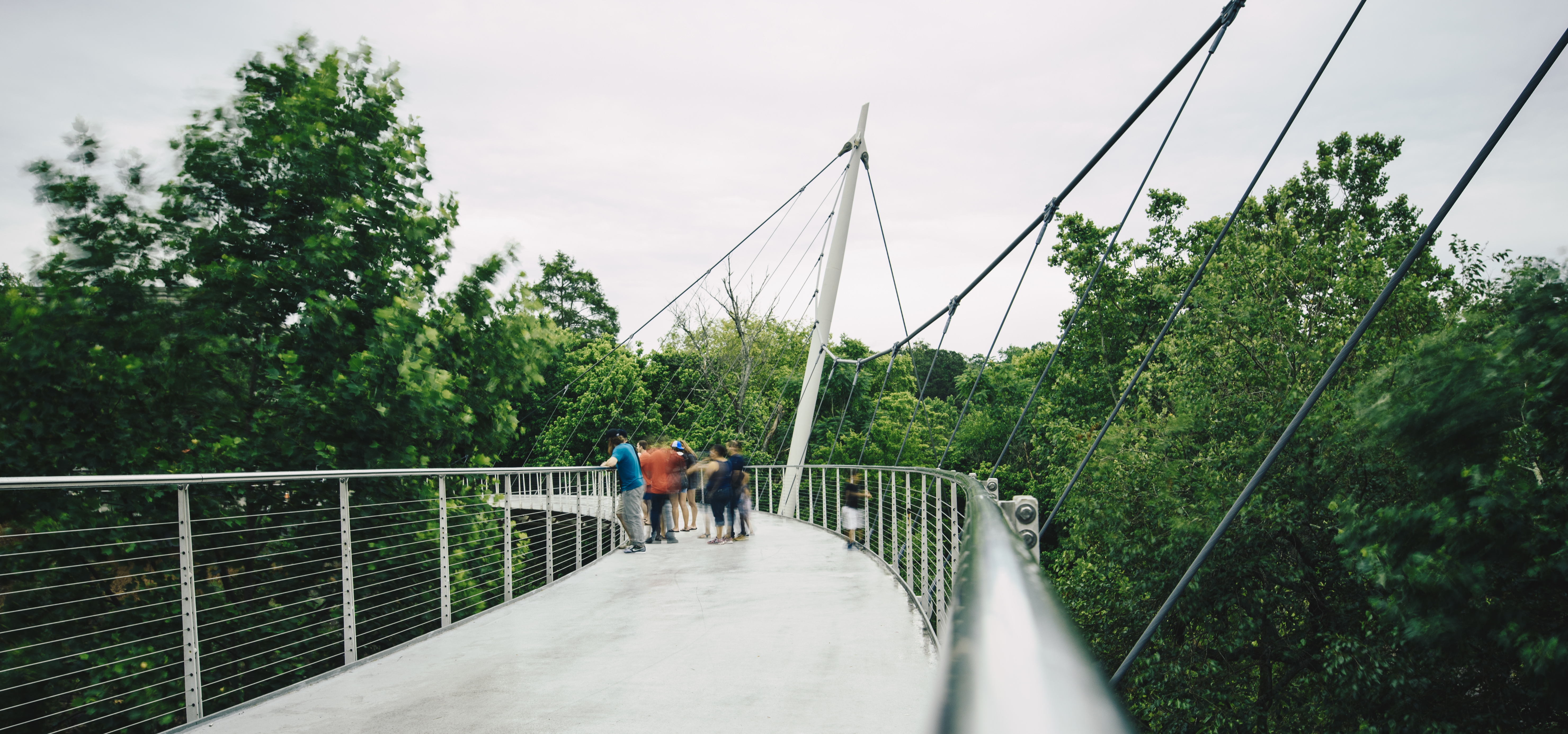 In the 1980s, as other parts of the city’s renaissance began to take hold, local leaders recognized the river’s potential as a community gathering space. The city worked with the South Carolina Department of Transportation and the Federal Highway Administration to evaluate and eventually demolish the Camperdown Way Bridge. In its place, the City planned an ambitious riverfront park and pedestrian bridge. Through a combination of support by the Carolina Foothills Garden Club, individual donations, corporate pledges, and the city’s hospitality tax, Greenville renovated the riverfront park and built Liberty Bridge in 2004, a stunning walkway across the falls that is now a Greenville landmark. The $13.5 million project has already spurred millions of dollars of investment in riverfront hotels, housing, offices, and retail space.
