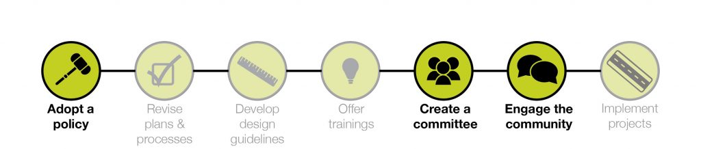 Baltimore has implemented three of the key implementation steps for Complete Streets initiatives.