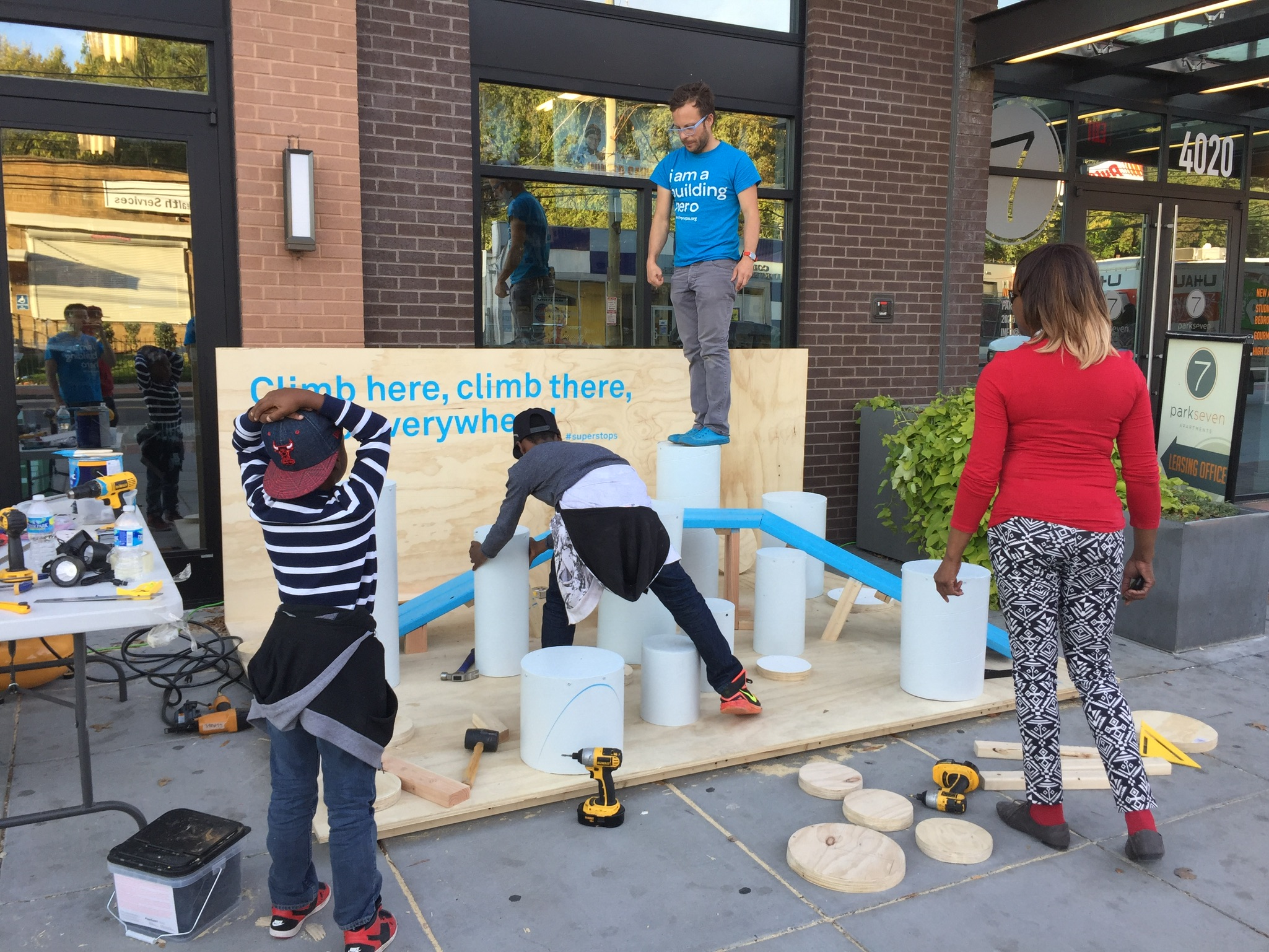 “Superstop” is one resulting project where over 100 people came together to build and design a bus stop at a busy intersection that lacked seating and a sense of identity. The end product was “Boombench,” which played an 8-hour loop of music from a local station and provided seating. This bench sparked conversations and community input that may not have happened otherwise.