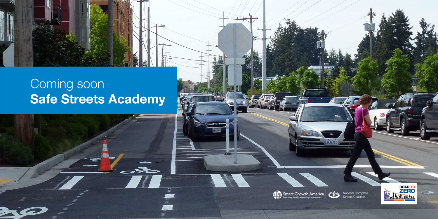 The National Complete Streets Coalition is excited to announce our brand new Safe Streets Academy, a free technical assistance program that will provide education and training on how to redesign and engineer roads to reduce traffic speeds and save lives. This competitive selection opportunity will provide three jurisdictions with in-person workshops, distance learning, and guidance implementing a demonstration project on a dangerous corridor. The program will aim to help planners and engineers use creative placemaking, public engagement, innovative project implementation, and proven engineering countermeasures as well as best practice roadway design to create safer streets for all users.