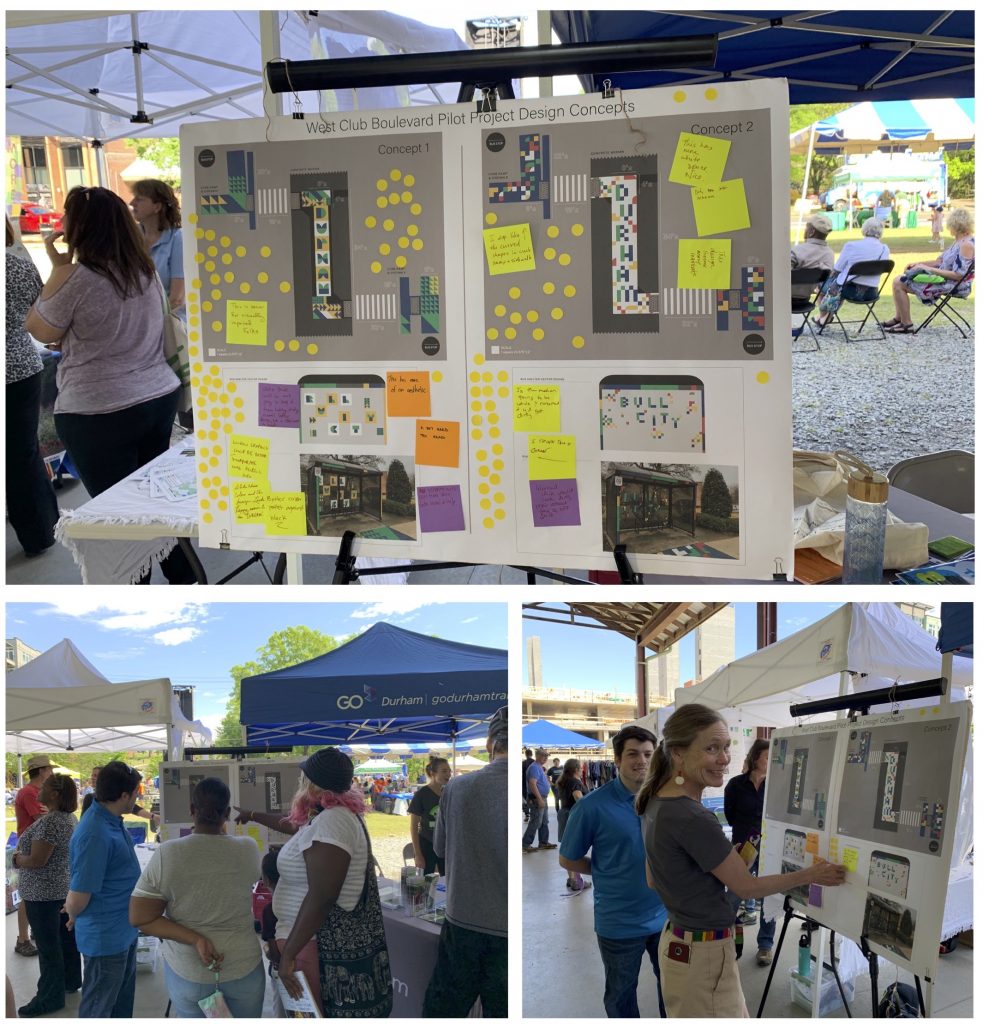 The team from Durham realized they needed to go beyond their typical online engagement and public meetingm model to make sure Walltown residents and people who ride the bus had a voice in guiding their demonstration project. In addition to collecting input through online surveys, they conducted in-person intercept surveys, where they spoke with people waiting at the bus stop who use the street on a day-to-day basis about the problems they were experiencing and the changes they would like to see. They also spread the word about their project through local media sources and staged pop-up meetings at nearby community events including a neighborhood association meeting, the Northgate Children’s Festival, and the Earth Day Festival.