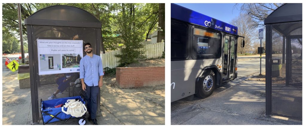 The Durham team spent some time at the bus stop on West Club Boulevard observing how people cross the street and talking to bus riders about their experiences before and after making changes to the site.