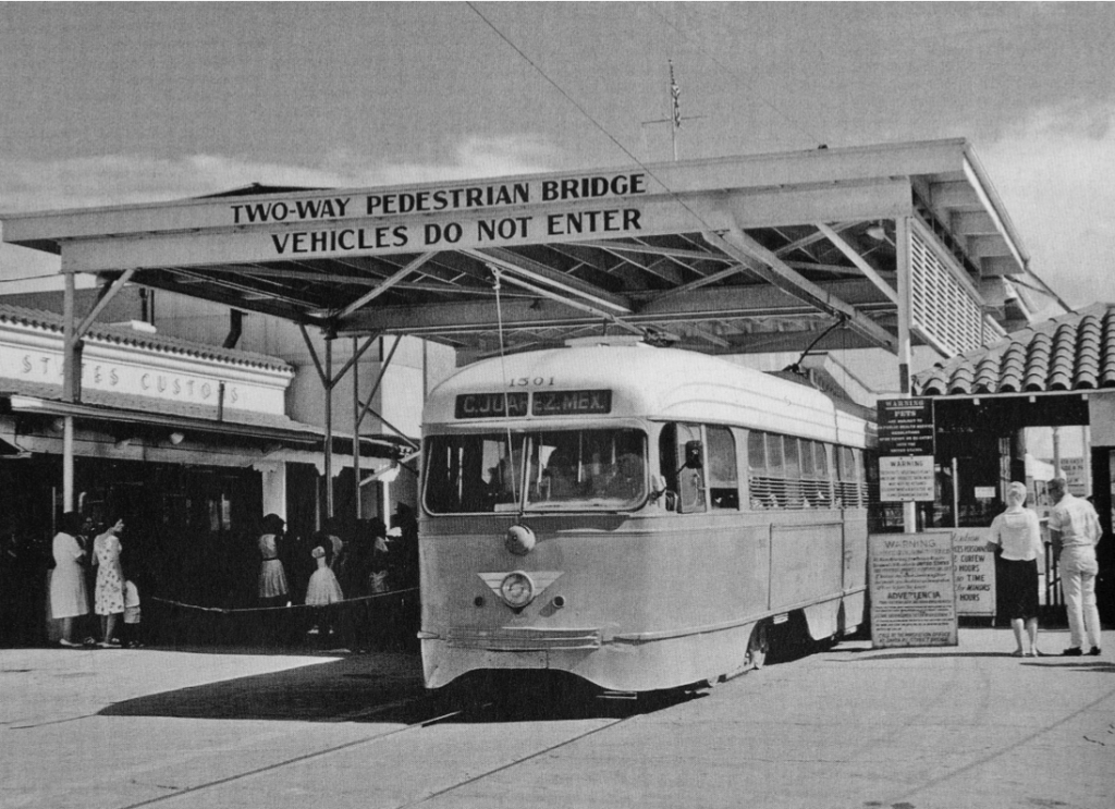 Until it was closed down in 1974, these border crossings were facilitated in part by an international streetcar system that connected the downtowns of both cities. As in many American cities, the streetcar system ran President’s Conference Committee (PCC) streetcars, with a sleek Art Deco design that was introduced after the Great Depression to lure new car owners back onto public transportation.