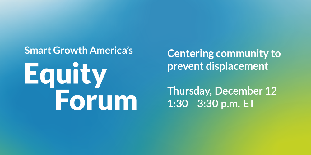 Join us on Thursday, December 12 from 1:30-3:30 p.m. for our Equity Forum: Centering community to prevent displacement. The event will feature Sheila Somashekhar from the Purple Line Corridor Coalition, participants from SGA’s Community Connectors and Healing our Highways programs, and partners with ICF and Partnership for Southern Equity, who will present a new resource for practitioners working to prevent displacement. Join us to explore community-centered efforts to prevent displacement in the face of massive investments in community development.