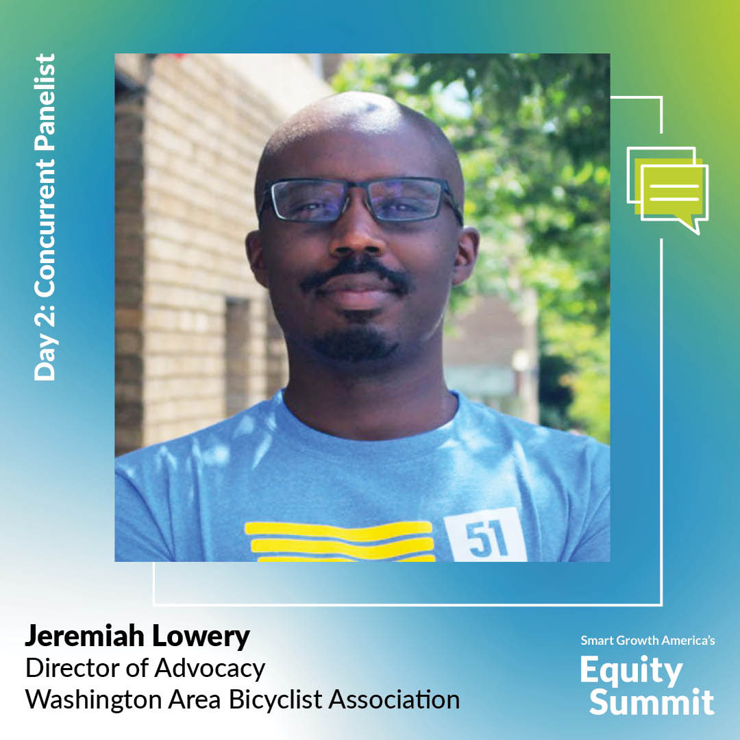 Jeremiah Lowery is the Director of Advocacy for the Washington Area Bicyclist Association. He is passionate about transportation justice and community empowerment. He was named one of Elevation D.C. Magazine’s 50 under 50 Food Heroes and he was also named Black Millennial for Flint’s Young, Gifted & Green 40 Under 40. Jeremiah was appointed by the Mayor of D.C. to be on the District’s first Food Policy Council, he is a former board member of the D.C.Sierra Club, WPFW radio, and former Chair of D.C. for Democracy, an all-volunteer-run advocacy group in DC with over 5,000 members.