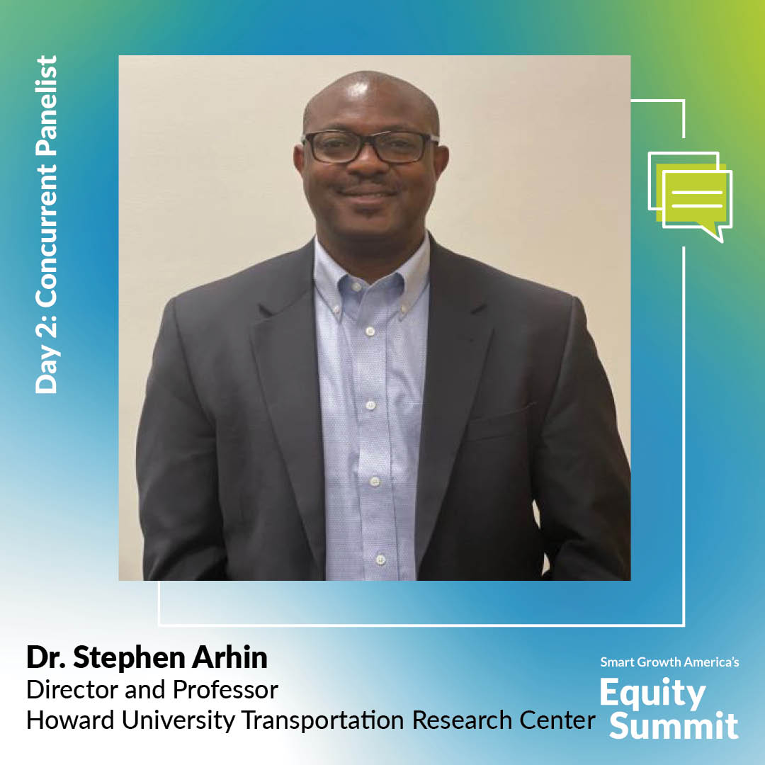 Dr. Stephen A. Arhin, is a Professor in the Civil and Environmental Engineering Department and the Director of the Howard University Transportation Research Center. He holds a B.S in Civil Engineering from University of Science and Technology (Ghana), a M.Eng. in Transportation Engineering from Howard University, Washington DC, and a D.Sc. in Transportation Engineering from The George Washington University. Dr. Arhin has significant experience in civil engineering with emphasis in highway engineering, traffic operations and safety, and Intelligent Transportation Systems. He is a registered Professional Engineer (P.E.) in DC, MD, DE and VA. Dr. Arhin also possesses a Project Management Professional Certification (PMP) and a Certification in Research Administration (CRA) and finally a registered Professional Traffic Operations Engineer (PTOE). He is also a Fellow of the Institute of Transportation Engineers.