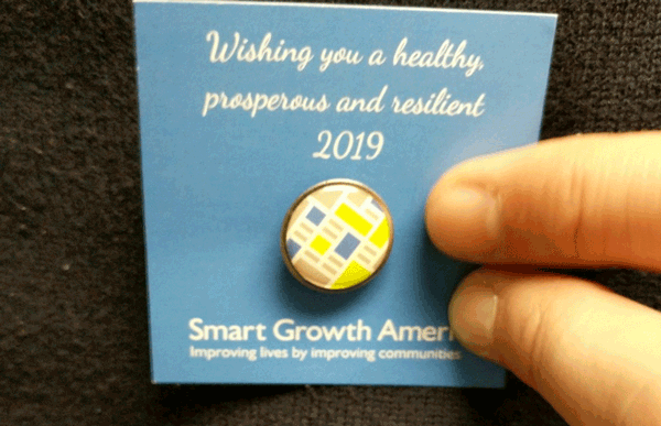 - For $30, get a Smart Growth America lapel pin with our logo (seen below)! It’s pretty cool and doubles as a great conversation starter.