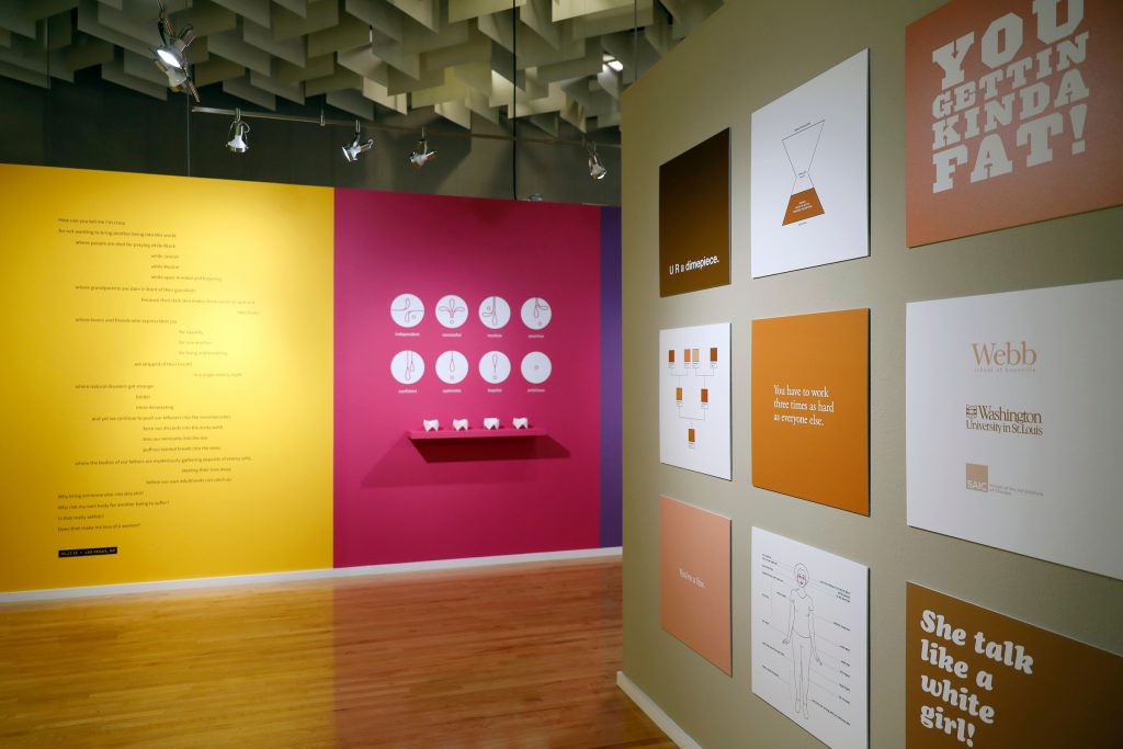 Ashley Hairston Doughty (artwork below) is a visual storyteller, explaining personal experiences through verbal and visual language. Much of her practice deals with socio-economic, racial, and gender-based issues, particularly those relating to cultural misconceptions and the development of personal identity. Doughty’s distinctive perspective has grown through residing in nine different cities throughout her lifetime, mostly in the southeastern, midwestern, and southwestern United States. Although trained as a graphic designer, Doughty’s artwork often crosses multiple media, including typography, illustration, writing, fiber and materials, and book arts. She shares and encourages such art-making as an Assistant Professor of Art at the University of Nevada, Las Vegas, and through her design studio, Design Kettle. Doughty’s work is included in the Joan Flasch Artists’ Book Collection in Chicago and has received awards from the Caxton Club, the College Book Arts Association and Arion Press.