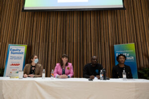 You could feel the passionate, dedicated energy at Martin Luther King Memorial Library where advocates, practitioners, and thought leaders came to meet the moment and learn strategies to propel community-centered, equitable ideas and projects forward. On the first day of the Summit, attendees heard a keynote from April De Simone, Founder and Executive Director of The Practice of Democracy, who opened up her remarks by saying that we are at a moment in society that is tugging at our consciousness for what equity and liberty and freedom mean. April noted that she’s tired of the inequitable stain of racist infrastructure and planning practices but will continue to devote herself to fighting them. “Let’s keep equity real by revealing how inequity has shown up,” she said.