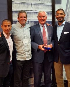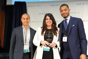 LOCUS President Jair Lynch (L) and Director Christopher Coes (R) recognize Angela Mingo, Community Relations Director at Nationwide Children’s Hospital in Columbus, OH, with the Richard Baron Award for Affordable Housing at the 2019 LOCUS National Leadership Summit.