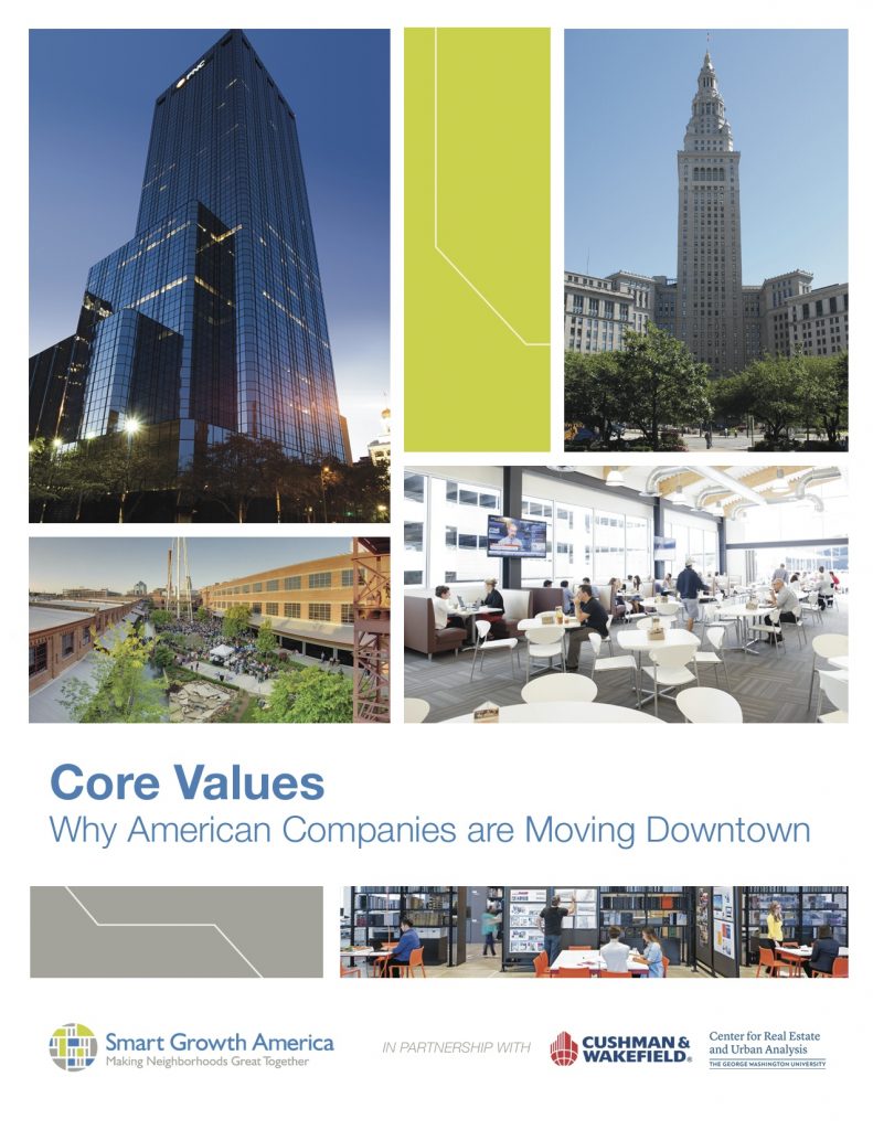 Core Values: Why American Companies are Moving DowntownHundreds of companies across the United States are moving to and investing in walkable downtown locations. As job migration shifts towards cities and as commercial real estate values climb in these places, a vanguard of American companies are building and expanding in walkable downtown neighborhoods. Why are companies choosing these places? What are the competitive advantages they see in these locations? And what features do they look for when choosing a new location? This landmark report examines the characteristics, motives, and preferences of companies that have either relocated, opened new offices, or expanded in walkable downtowns between 2010 and 2015. Read More |