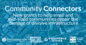 Community Connectors is a grant program to support small and mid-sized cities in repairing the damage of divisive infrastructure through capacity-building grants and technical support. The program is led by Smart Growth America in collaboration with Equitable Cities, the New Urban Mobility Alliance, and America Walks. Community Connectors is supported by the Robert Wood Johnson Foundation.