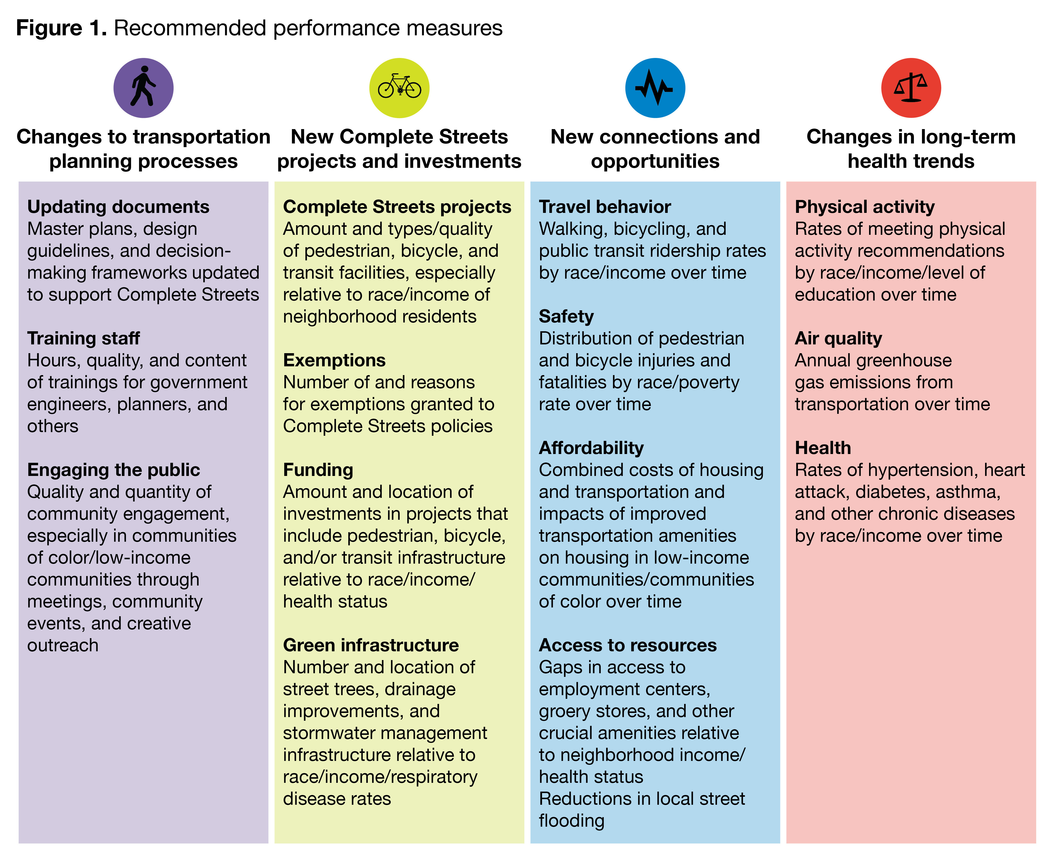 Based on the National Complete Streets Coalition’s research and experience working with state and local departments of transportation, we have compiled the following list of recommended performance measures to evaluate Complete Streets through a health equity lens. In this report, we apply this evaluation approach to New Orleans and Jefferson Parish. By doing so, we identify ways for these two jurisdictions to increase the benefits from their Complete Streets investments. We hope this approach will serve as a guide for jurisdictions around the country to measure the success of their own Complete Streets programs with health equity in mind.