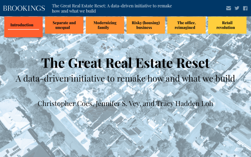 LOCUS partnered with the Brookings Institution to release The Great Real Estate Reset, which consists in part of five briefs, written by experts at Brookings and LOCUS, that examine the state of the real estate industry with data-backed insights, unpacking a series of five trends that are converging to create a mismatch between what the real estate industry is building and what is sorely needed to build a prosperous economy where everyone gets a chance to succeed: