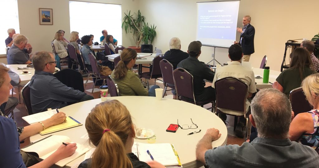 Pagosa Springs was looking to address this housing shortage while helping to redevelop downtown to create a more walkable environment that encourages visitors and locals alike to linger. To achieve that, the town applied and was chosen for technical assistance from Smart Growth America, made possible through an EPA Office of Community Revitalization Building Blocks grant. The two-day Smart Growth 101 workshop helped Pagosa Springs understand its redevelopment potential and to begin working together towards a shared vision for its future.