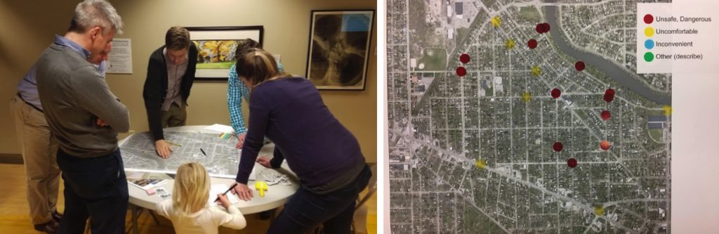 Local residents helped the South Bend team pinpoint opportunities to test our new traffic calming tools, especially at dangerous (red) and uncomfortable (yellow) intersections in their neighborhood.
