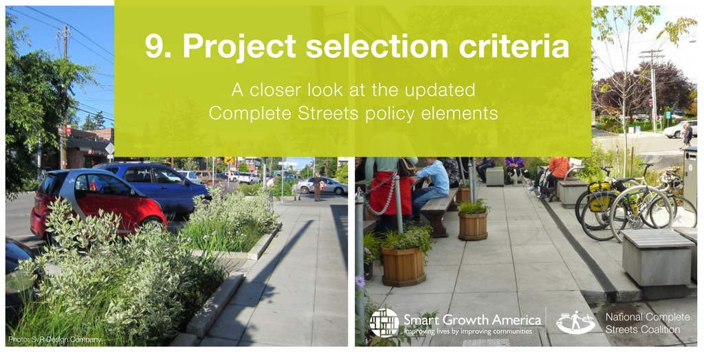 A strong Complete Streets policy sets criteria for choosing projects that prioritizes Complete Streets projects (element #9)