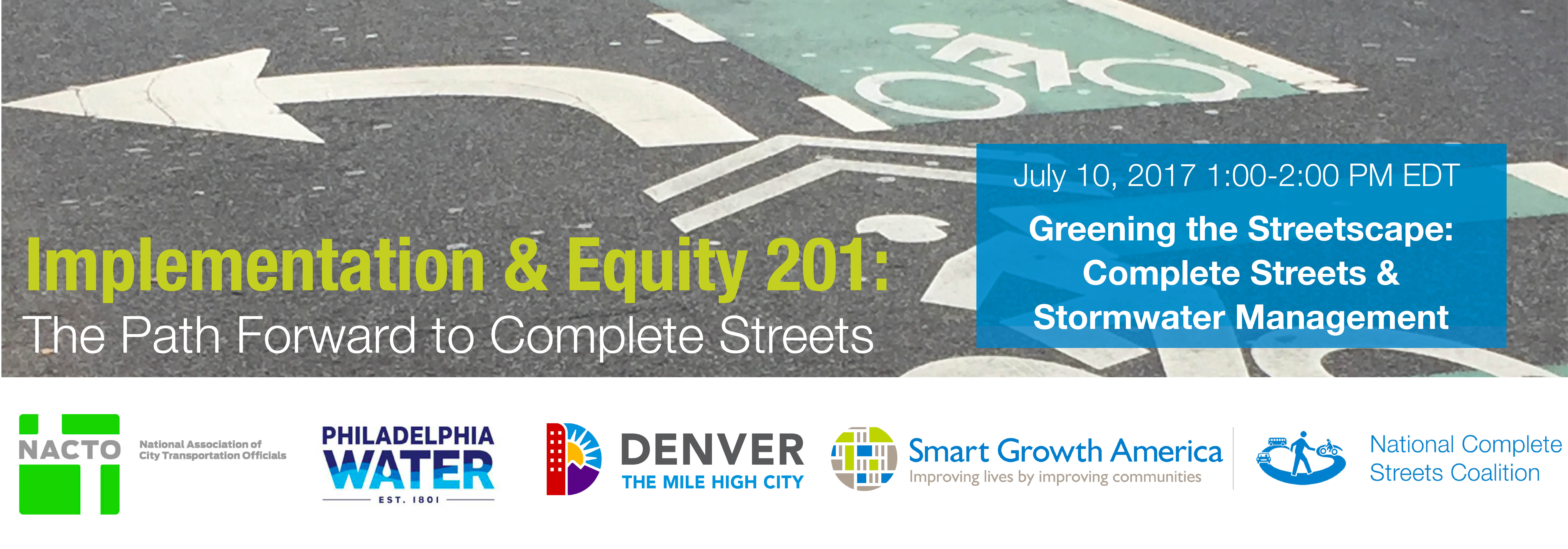 Our next webinar will be Greening the Streetscape: Complete Streets & Stormwater Management, taking place on Monday, July 10th from 1:00-2:00 PM EDT. Co-host NACTO will join the Coalition in answering questions such as: How can transportation projects be designed to benefit the environment, promote public health, and manage stormwater, all while creating vibrant, attractive, walkable places? And what innovative strategies are cities around the country using to make their streets safer and more resilient?