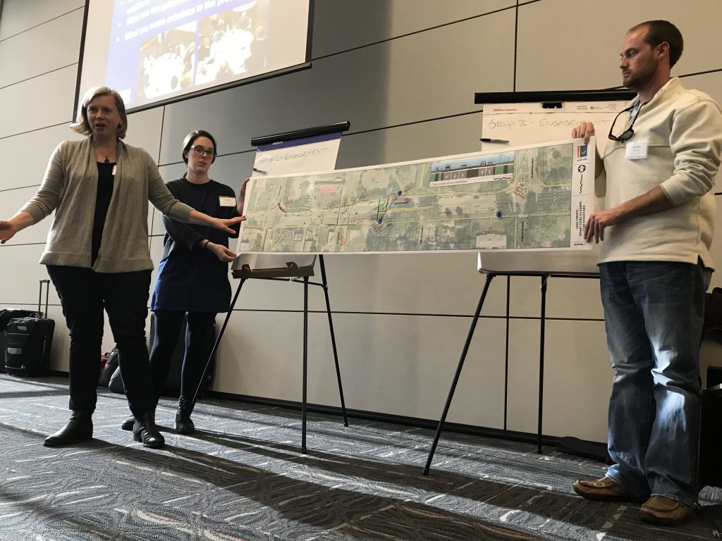 Through the Safe Streets, Smart Cities Academy, Smart Growth America worked with three cities around the country, including Huntsville, to implement temporary safety demonstration projects. The City of Huntsville partnered with the South Huntsville Business Association, AARP, and the Rotary Club to implement a demonstration project on 4 Mile Post. The project makes it easier and safer for people to walk or bike along and across the street, and it also restores missing connections between nearby destinations, including homes, parks, trails, and employment centers. Along the way, the team faced resistance from elected leaders outside the project area who opposed any project—even a temporary one—that would take space away from cars, but thanks to their persistence and close engagement with the community, they won the support they needed to install temporary safer streets improvements on 4 Mile Post and to work toward making these changes permanent.