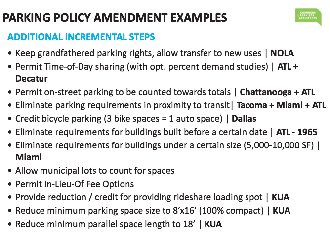 Rather than embarking on a five-to-seven year process for a full zoning rewrite, KUA and the City of Atlanta decided to first address quick-fix problems with the current ordinance. The laundry list of improvements included a missing middle zoning category, neighborhood design standards, and reduced parking/loading requirements. The latter initiated the following: