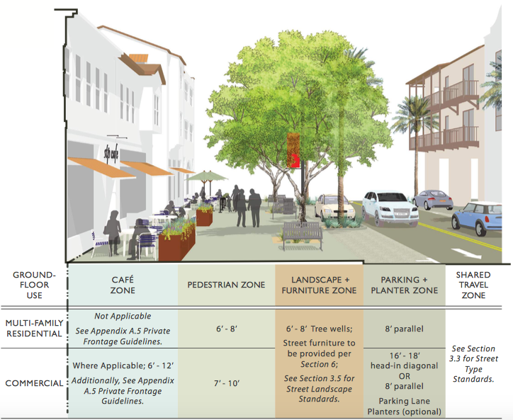 The form-based code for the University Neighborhood in Palm Desert, CA won a Driehaus Award in 2017 for its clear direction in creating excellent walkable places. The jury said that this code addresses both the public realm and private development to create properly scaled corridors that are comfortable and appealing to pedestrians.